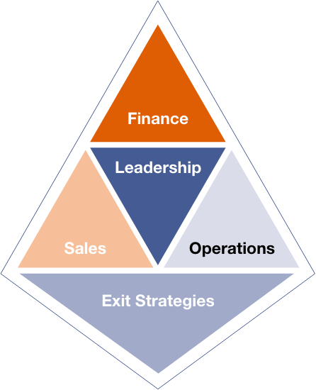 Our roundtable process is focused on four pivotal areas. With Leadership Development at the core, we use this model to provide timely insights, proven problem-solving methods, unbiased feedback and exit strategies.