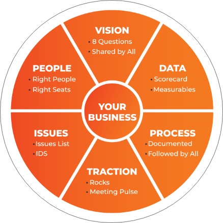 The Entrepreneurs Operating Systems Model provides a visual illustration of the Six Key Components™ of any business that must be managed and strengthened to be a great business. This model applies to 10-100+ employees Second Stage Companies $5M alike, in any industry.